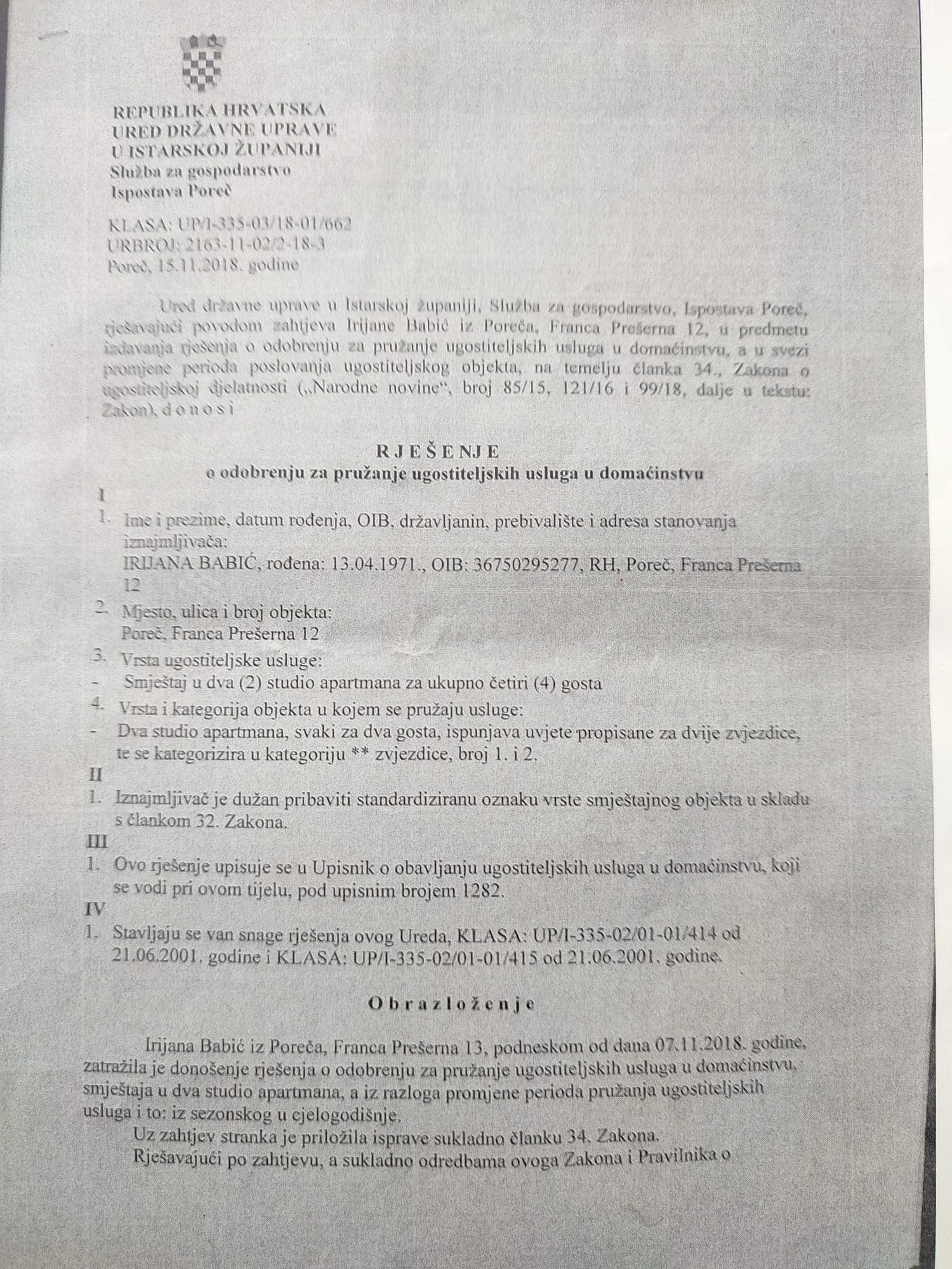 Rješenje o iznajmljivanju